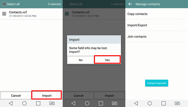 Après cela, tous vos contacts dans le fichier VCF que vous avez vu sur votre écran seront importés dans votre répertoire dans votre nouvel appareil Android.