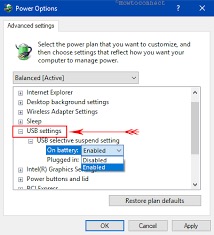 Étape 4: Et sur l'écran Options d'alimentation, allez-y et recherchez les paramètres USB. Ensuite, développez l'USB, puis désactivez les paramètres sur batterie et branchés.