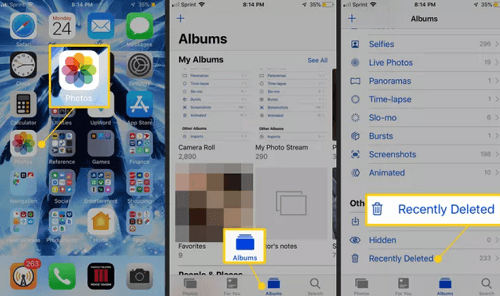 Il est également possible que vous ou d'autres personnes ayez accidentellement supprimé vos photos, si tel est le cas, toutes les photos supprimées peuvent se trouver dans le dossier "Supprimé récemment" dossier. Lesdites photos seront stockées dans le dossier pendant trente (30) jours, et vous devez les récupérer avant la fin de la période de conservation de 30 jours.