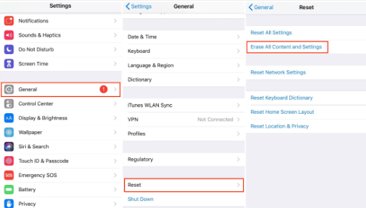 Cliquez sur Paramètres> Général> Réinitialiser> Effacer tout le contenu et les paramètres. Cela donne à l'appareil une table rase pour récupérer les contacts WeChat sur iPhone.