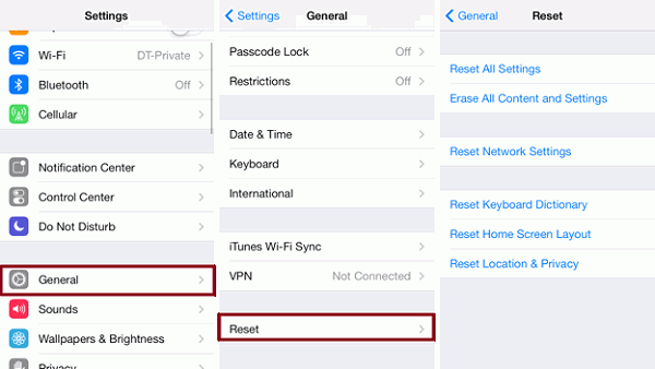 Si la chance est sèche, essayez de réinitialiser l'ensemble des paramètres de l'iPhone pour corriger le problème de l'iPhone qui ne cesse de redémarrer. 'Réinitialiser tous les réglages'est différent de'Effacer tout le contenu et les paramètres'Cela n'effacera pas les données du téléphone mais supprimera uniquement les paramètres du système.