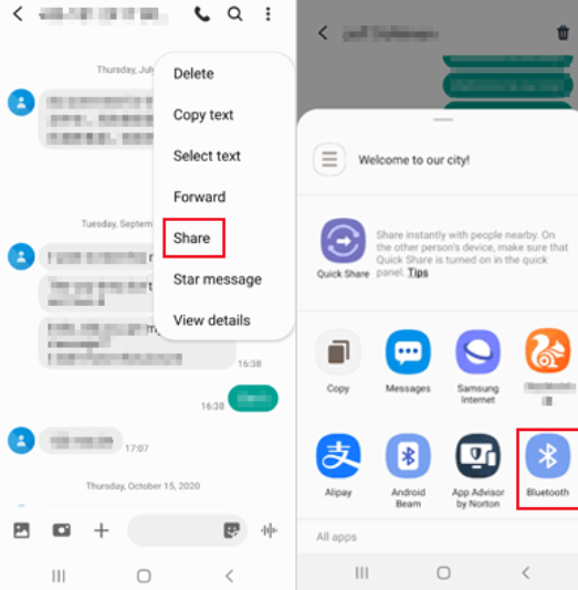 Voici comment transférer vos messages via Bluetooth :