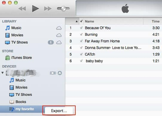 Étape 3: Ensuite, à partir de l'onglet Appareil situé sur le côté gauche de votre programme iTunes, vous pouvez rechercher la liste de lecture que vous souhaitez transférer depuis votre appareil iPod.