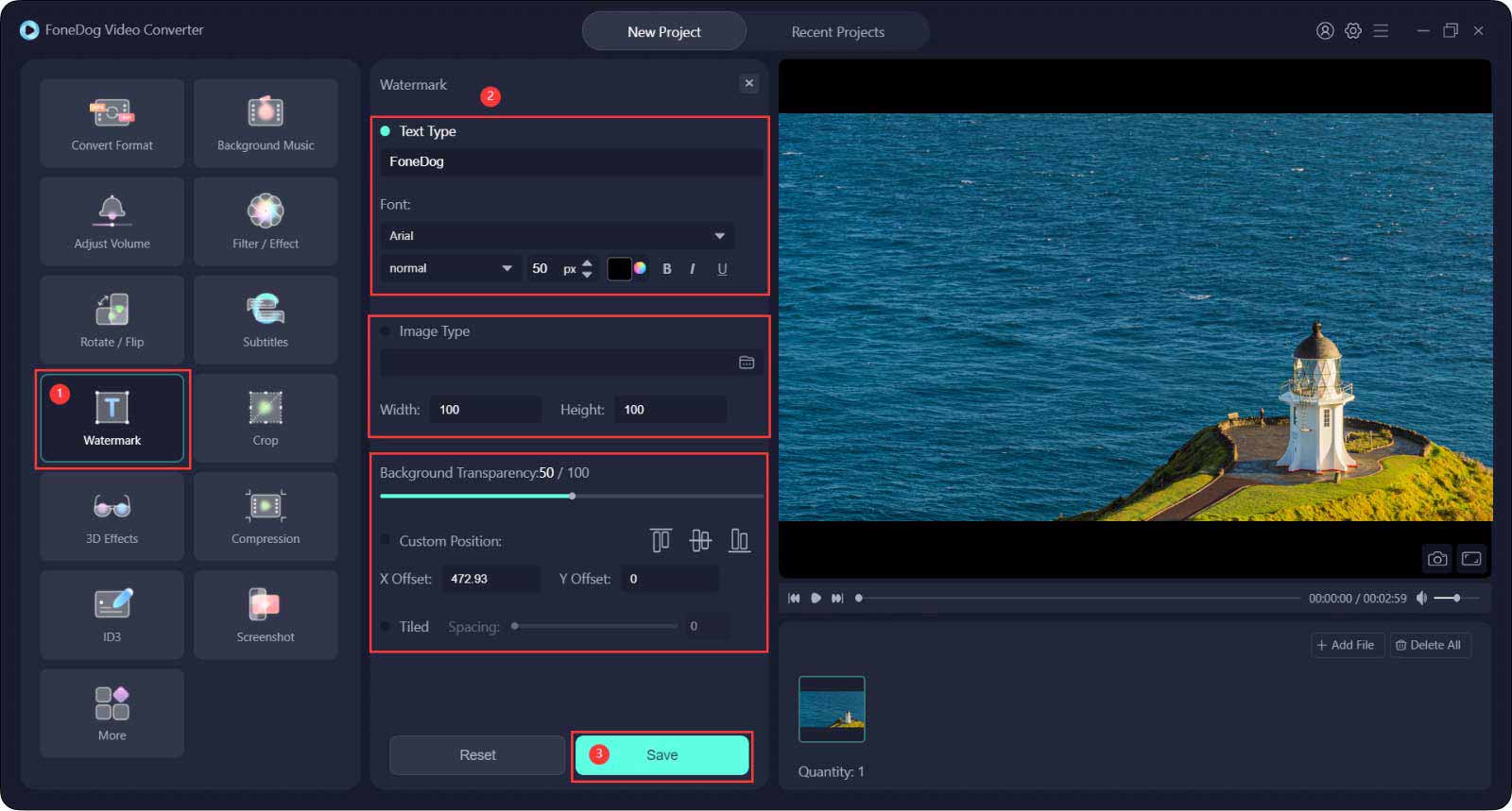Étape 1. Appuyez sur le bouton Watermark. Vous pouvez choisir d'ajouter un type de texte ou un type d'image.