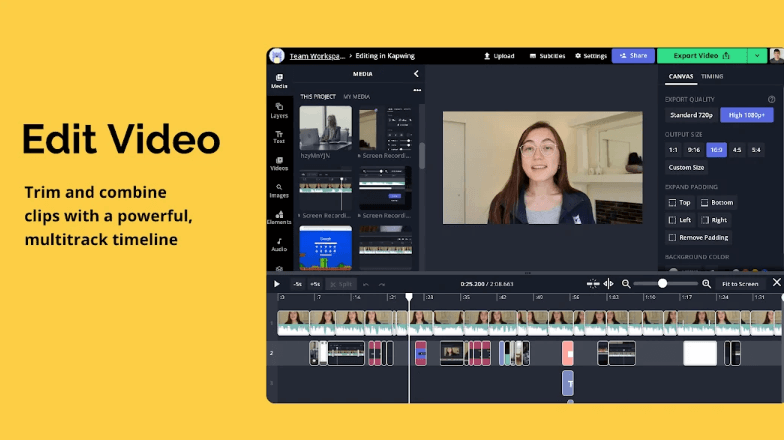 Kapwing peut créer slideshow et montages aussi. Parce qu'il est idéal pour les producteurs de vidéos novices et professionnels, le principal argument de vente de Kapwing est sa simplicité d'utilisation.