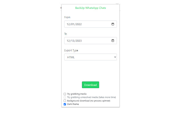 Si vous utilisez constamment WhatsApp Web, vous pouvez également rechercher une extension de navigateur WhatsApp. Avec l'aide de l'extension, vous pouvez facilement télécharger des messages WhatsApp sur PC. Vous pouvez explorer l'extension WhatsApp Backup Chats sur Google Chrome et l'utiliser sur la version de votre navigateur WhatsApp.